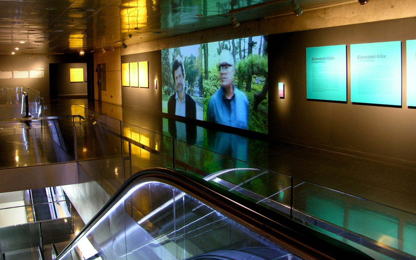 Esta genealogía histórica se observa también en proyectos como Voyage(s) en utopie de Jean‑Luc Godard, presentada en el Centre Pompidou (París, 11 de mayo–14 de agosto de 2006), donde la obra del cineasta —estructurada como un collage de imágenes, textos y secuencias— propone una exposición que desborda la pantalla y coloca al visitante en el centro de una reflexión poética sobre la historia del cine y su relación con otras formas de arte. En Correspondencias de Víctor Erice y Abbas Kiarostami, coproducida por el CCCB y el La Casa Encendida (4 de julio-24 de septiembre de 2006), el intercambio epistolar filmado se presentó como cine pensado para el museo más que para la sala comercial, consolidando la idea de que el espacio expositivo puede recontextualizar las prácticas cinematográficas en términos de duración, presencia y recorrido. El museo incorpora el cine en un momento en que la sala oscura atraviesa una crisis estructural y en que las formas tradicionales de exhibición han perdido centralidad. A su vez, el cine encuentra en el museo un espacio donde preservar cierta densidad crítica frente a la lógica de la circulación acelerada y el consumo fragmentario. Este movimiento produce tensiones evidentes. El cine, concebido históricamente como industria artística basada en la reproductibilidad y en la narración, entra en una institución que privilegia el recorrido, la discontinuidad y la obra como objeto cultural. Algunas exposiciones han asumido esta fricción como parte de su sentido, como ocurrió con la presentación de Arnulf Rainer (1960) de Peter Kubelka en formato expositivo, donde la materialidad del cine se convertía en problema visual y conceptual, reforzando la noción de que el museo altera la experiencia del espectador y obliga al cineasta/artista a repensar su práctica.